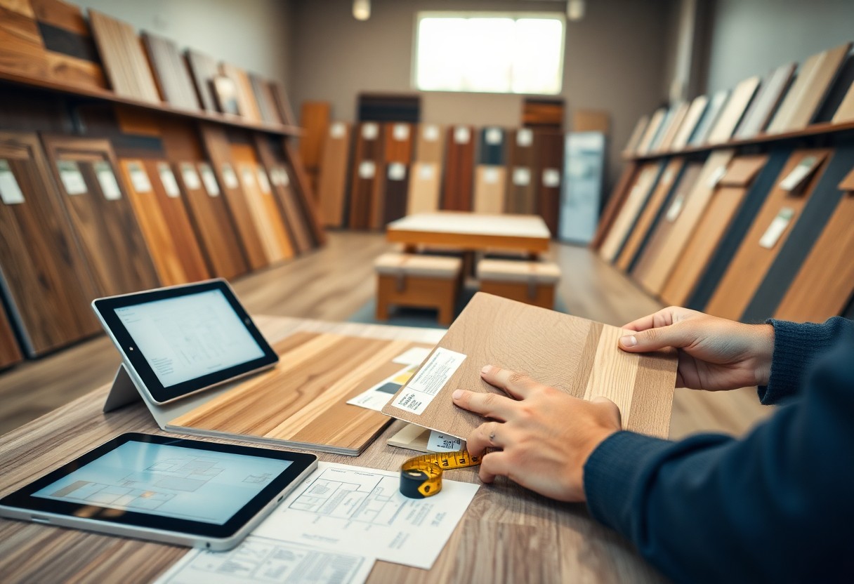 When you step into showrooms, compare samples against your room’s lighting and layout: bring 12-18 inch samples and place them on the floor to observe color shifts in morning and evening light, test under likely traffic zones, and note how textures hide scratches if you have pets or kids; aim to visit 3-5 stores so you can directly compare finishes, price ranges and installation options.