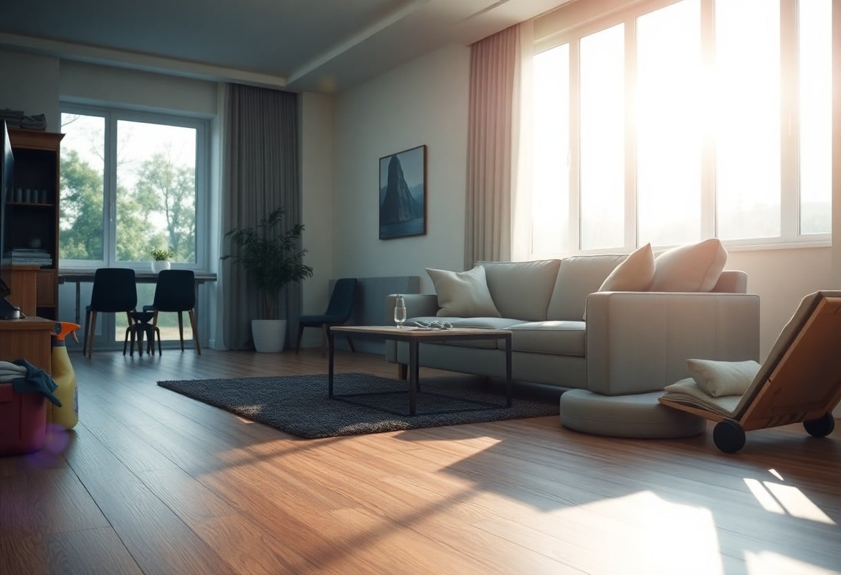 To further simplify your cleaning routine, consider using a damp mop with a pH-neutral cleaner instead of stronger chemical alternatives. This approach protects your flooring and prevents scratches that can occur from gritty particles. Additionally, using rugs in high-traffic areas can help preserve the finish, making your vinyl flooring a lasting investment that continues to look great with minimal care.